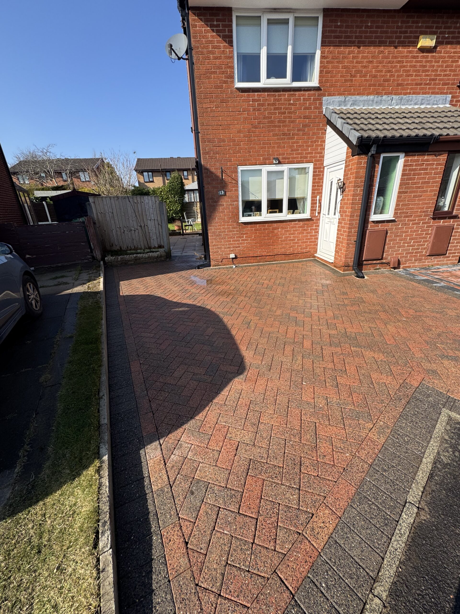 Block Paved Driveway – Fresh & Restored! Check out this block paved driveway transformation! Over time, weeds, moss, and grime had taken over, but we used our expert cleaning methods to bring it back