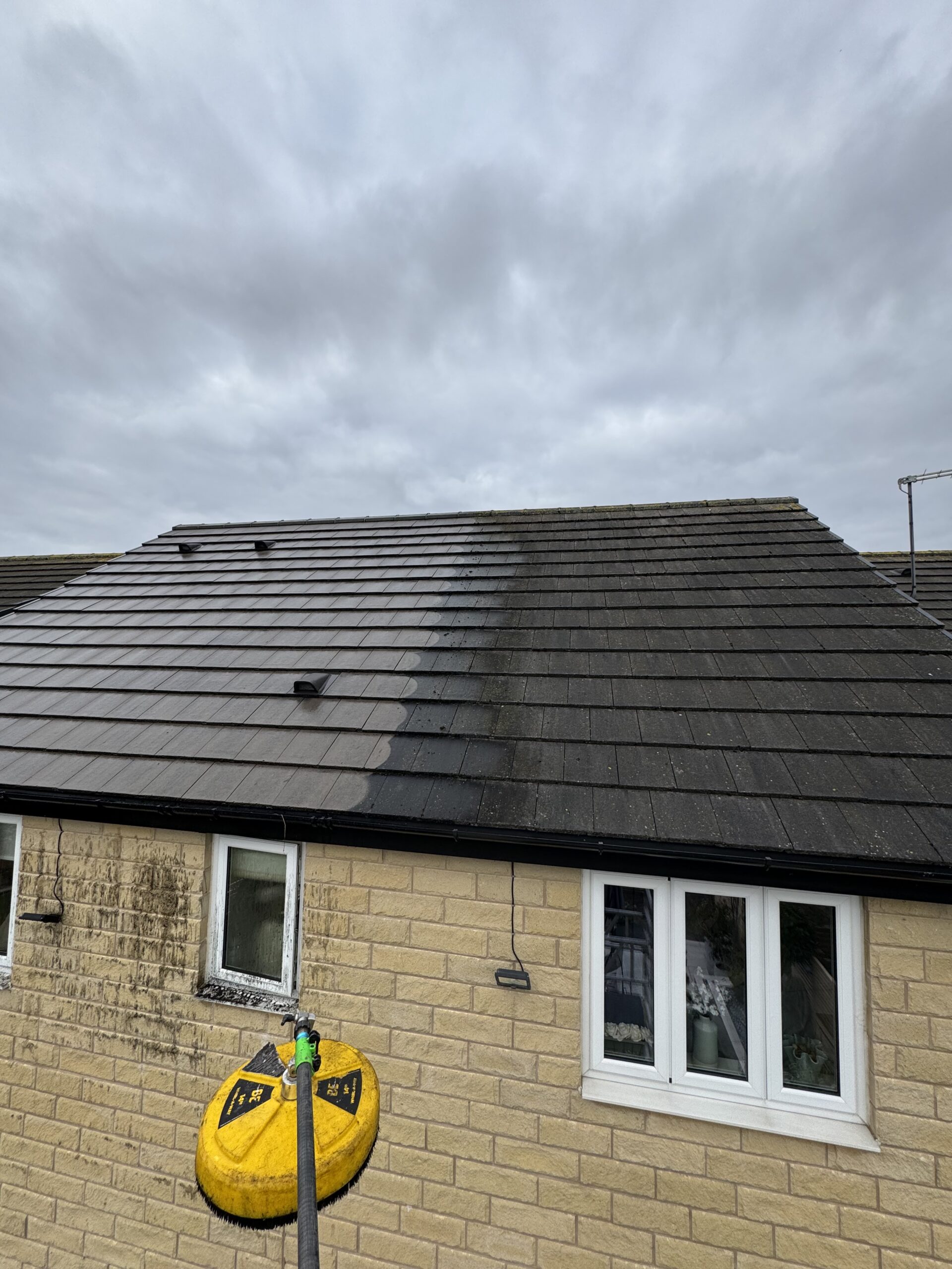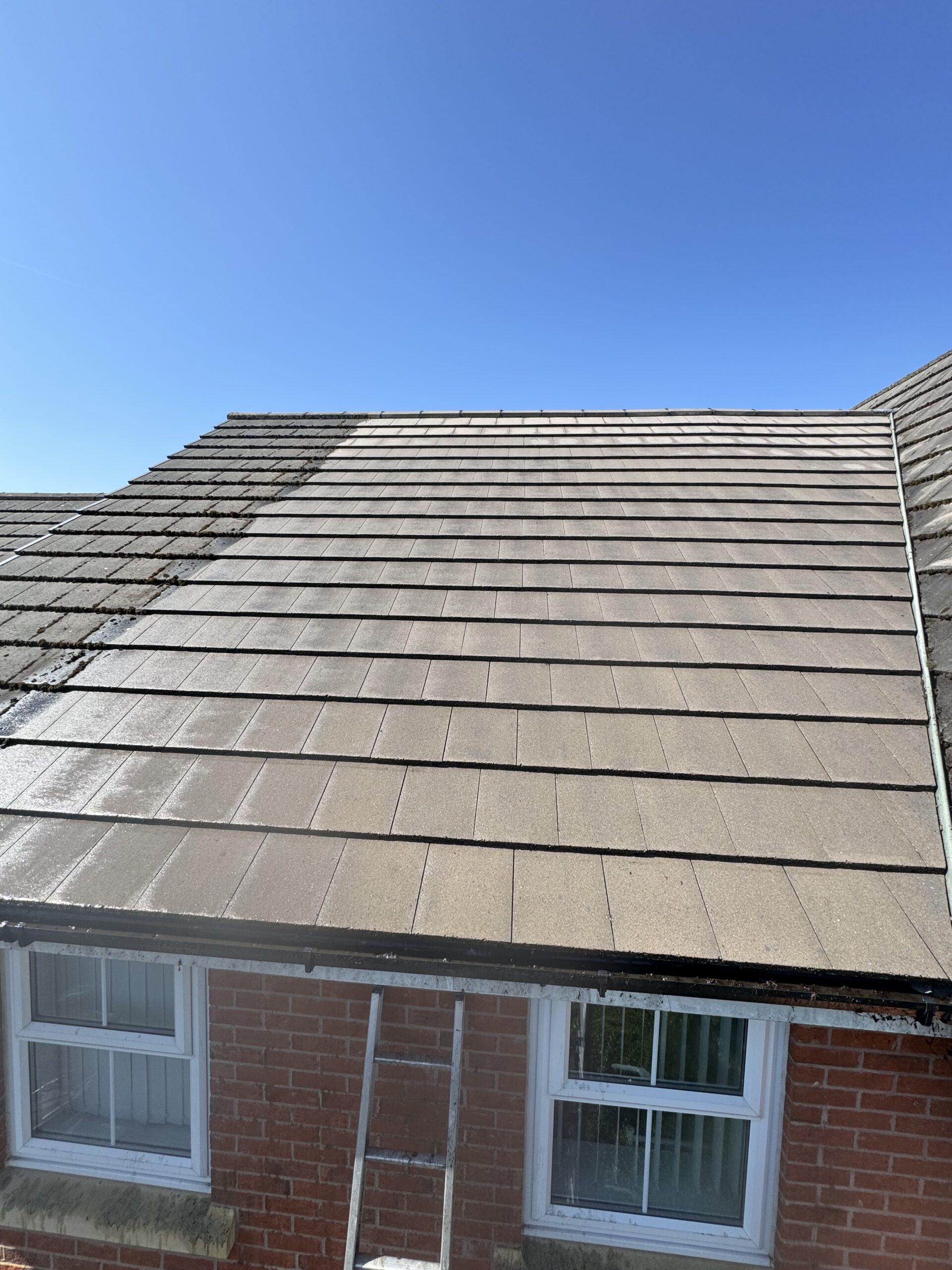 Full Roof Clean – Step by Step Transformation! Check out this full roof clean from start to finish – captured in every stage! From moss-covered to fully treated and protected Swipe through the photos