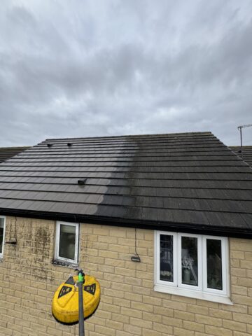Garage Roof Transformation in Bradford! This one was thick with moss – but not for long! We tackled this garage roof and brought it back to life with a proper deep clean. Check out
